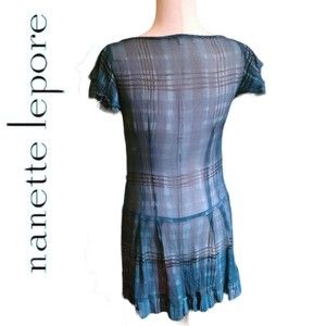 Beautiful Nanette Lapore 2-pc Silk Plaid Turqoiuse Blue Short Sleeve Dress, sz 2