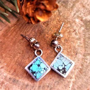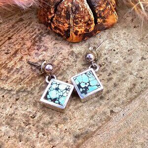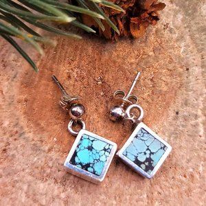 Beautiful Nature Turquoise Square Sterling Silver Earring