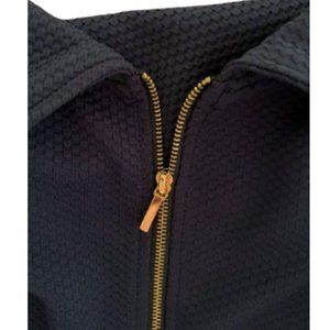 The texture of the fabric, the cowl neck, the exposed back zipper, and the seams for shaping make this sleeveless dress a must-have.