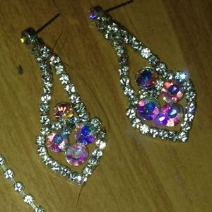 Stunning multi colored necklace and earrings! They sparkle in every type of light and would be perfect for prom, a wedding, or any other event!