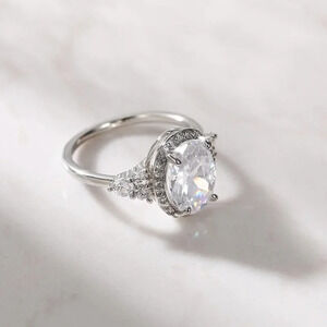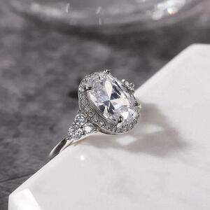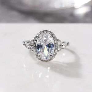 ▶Beautiful Noble Oval Pure CZ Macro Pave Silver Wedding Luxury Rings, K936