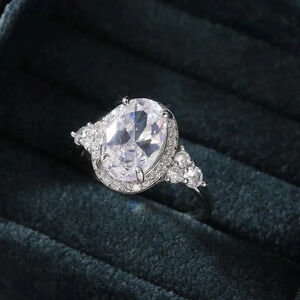 Beautiful Noble Oval Pure CZ Macro Pave Silver Wedding Luxury Rings, K936