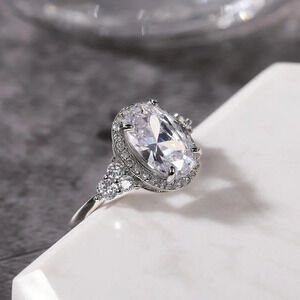 😍Beautiful Noble Oval Pure CZ Macro Pave Silver Wedding Luxury Rings, K936