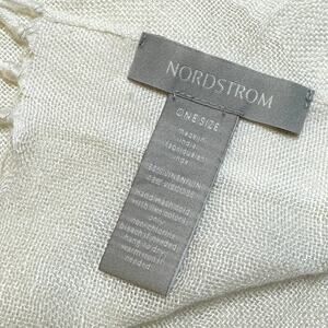 Beautiful Nordstrom Long Linen Blend Ivory Scarf Wrap Fringe 28x80" Boho EUC