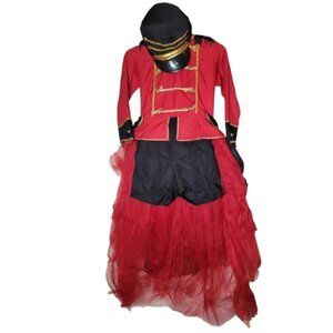 Most beautiful Nutcracker Costume in the color Red, Black. with a touch of Gold. Has Jacket/Bodysuit, Tulle Skirt and Hat. Tulle Skirt is Detachable and attaches with velcro. Slightly wrinkled from being folded in original packing.