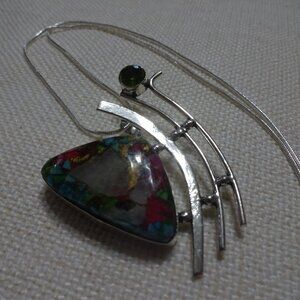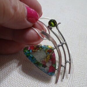 Beautiful "OYSTER TURQUOISE & PERIDOT" Handmade Sterling Pendant on a 20" Chain #762B