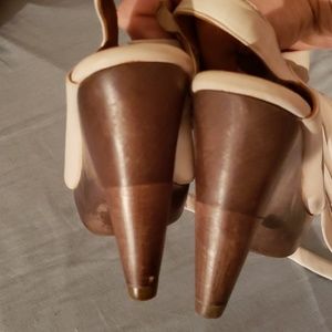 Wood high heels in off white leather with strippy in perfect condition. I am Crazy in love with them but they to tie on me I tried to use them one or twice And I couldn't handle them.