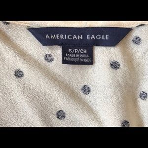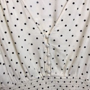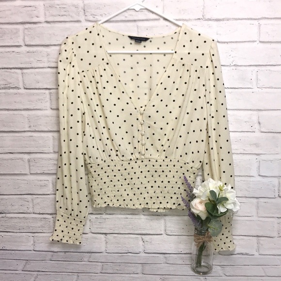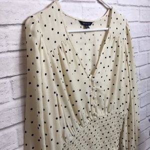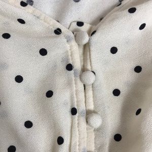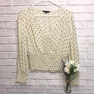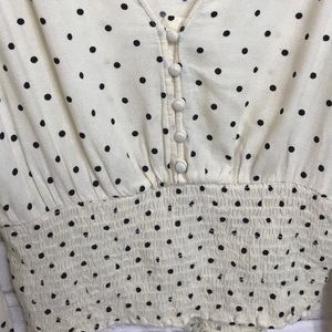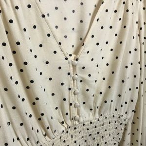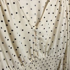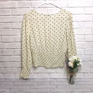 NEVER WORN Cream/ Off-White with Black Polkadot Blouse with long V-neck.