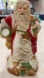 Charming Musical Santa Claus figurine. Features a red and white robe with green accents. Perfect for holiday decor.