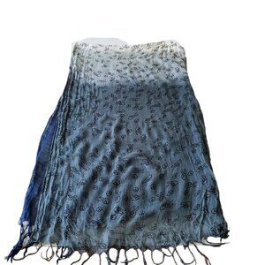 Beautiful Ombre Blue Peace Love 100% Viscose Fringed Scarf