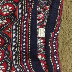 Elastic waist to fit all sizes. Little buttoned pocket at the top. Made in Thailand. Beautiful, multi-purpose pants!