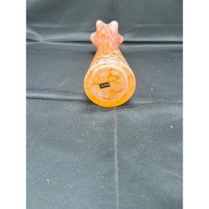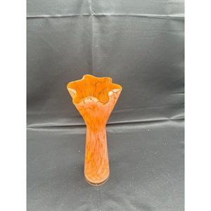 Beautiful Orange White Blown Glass Vase Marked Japan Ruffled 10"