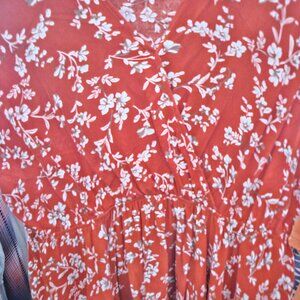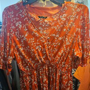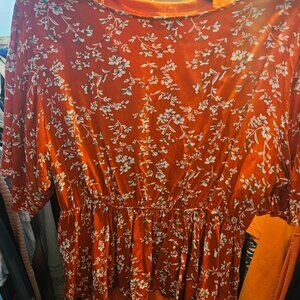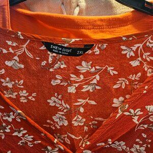 This is a really pretty blouse purchased from Shein. It is a 2XL but fits more like a L/XL which is why I am selling it. It is very nice material and nicely made. It is orangy in color with white flowers.