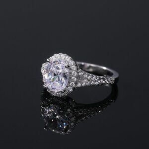Beautiful Anillos Oval Crystal Zircon Silver Classic Wedding Ring for Women, L109