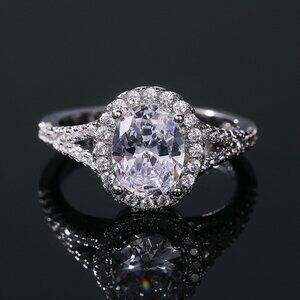 🌸Beautiful Oval Crystal Zircon Silver Classic Wedding Ring for Women, L109