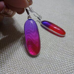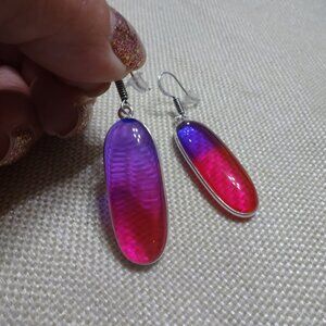 Beautiful PURPLE & PINK BI-COLOR TOURMALINE Handmade Sterling 925 Dangle Earrings (1 1/2" Drop) #141C