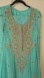 This gorgeous pishwas has heavy work all over. Size XS. Chest 17 inches. Worn once. Please note some of the stones have discolored over time due to the glue having changed colour which makes them look dull gold instead of silver. dupatta is one sided heavy and rest 3 sides light work. Please see last picture which shows a small tear in the dupatta. That tear was patched/stitched by hand. I wore the dipatta with that tiny defect on my Valima and it wasnt noticeable at all. This price includes pishwas(shirt), Dupatta, plain churidaar pajama. I don't have the lehnga anymore