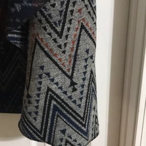 Gray with black, blue and orange triangle pattern