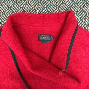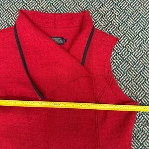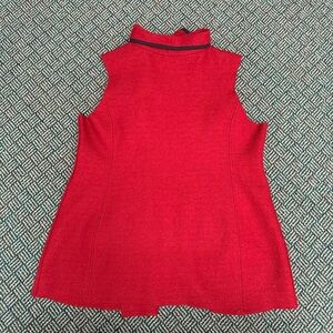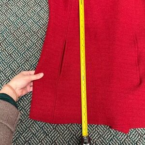 A gorgeous vest. Has pockets, covers your butt, & is in great condition. Such a great holiday season color.