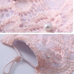 Beautiful Pink Lace Face Mask with Pearls. Makes a great wedding face mask. Very lightweight and breathable great for summer. Why wear a boring face mask when you can enhance your wardrobe with one of these beautiful lace face masks! Extremely comfortable with soft inside layer. One size fits most. Features very stretchy material, adjustable straps, lace on front and edges, and small artificial pearls on the front. Can be worn casually but fancy enough for dress up wear.