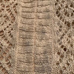 Love all the delicate patterns. Light sweater for cool evenings - so pretty!! Cream color