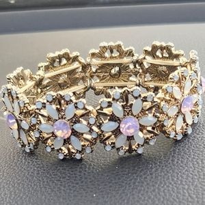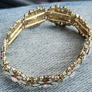 Beautiful Pink & a Very Light Green Crystal Elastic Stretch Bracelet (NWOT)