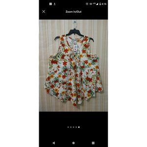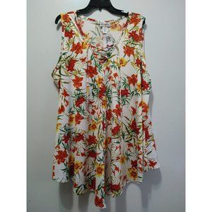 Beautiful Plus Size Long Length Floral Blouse Size 3X with front v neck ties