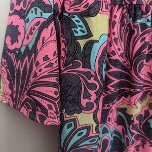 Gorgeous patterned 3/4 sleeve plus size tunic top. Soft pinks, yellows and blues on a gray base. Round neckline with seam under bust line. In excellent condition! Very beautiful! Size 2X