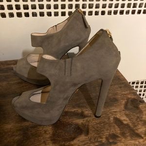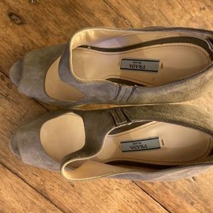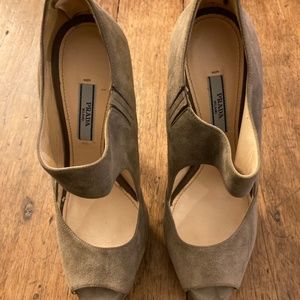 Beautiful Prada taupe suede peep toe stilettos