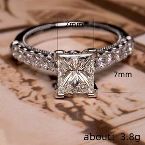 Beautiful Pure Zircon Princess Cut Romantic Wedding Rings for Women, PD416