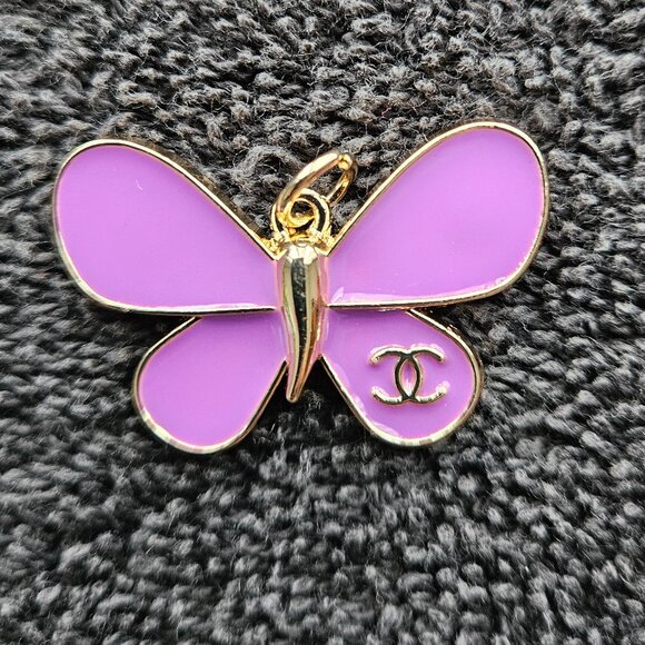 Purple butterfly charm with gold. Comes with an 18" gold plated chain.