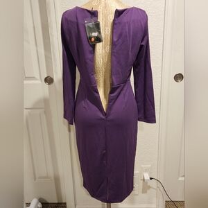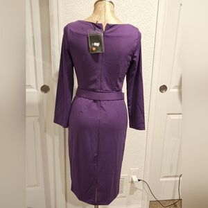 Elegant purple dress with long sleeves and a stylish belt. Perfect for any occasion. Size Large by HMR