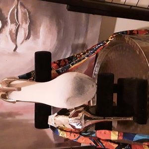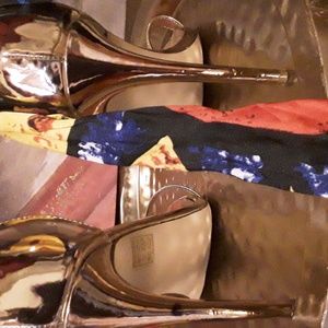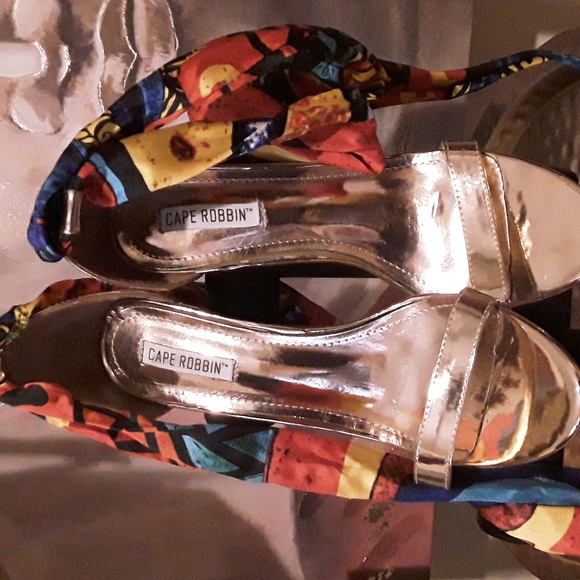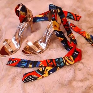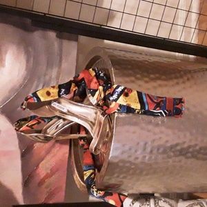Faux patent leather, SHOW STOPPERS! The colorful scarf wraps seductively up your calf, giving your legs that WOW! They were only worn twice...YOUR TURN!