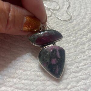 Beautiful RUBY ZOISITE Handmade Sterling 925 Pendant on Chain #776D