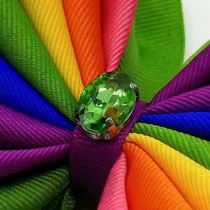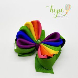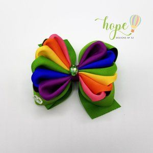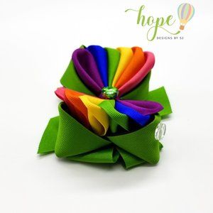 Beautiful Rainbow Hair Bow for Girls with a Unique Style. It Has a Rhinestone.