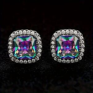 The silver-plated setting provides a polished, refined backdrop, ensuring the colors and sparkle truly stand out. Perfect for special occasions or adding a pop of color to everyday outfits, these earrings are a stunning choice for those who love bold, eye-catching jewelry with a touch of sophistication.