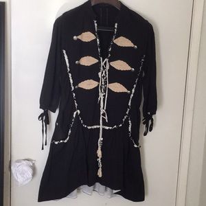 Black Cotton, lace up, beautiful and fine detail, has two pockets, 3/4 sleeves and gathering in the back dress.