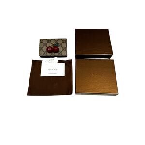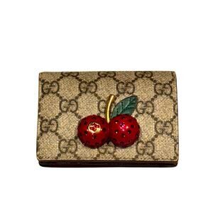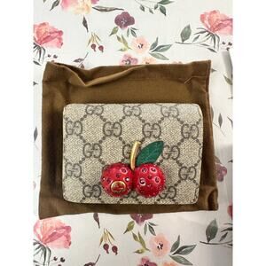 Gucci GG 3D Cherry Wallet. In Excellent condition with no callouts or damage. Clean! Preowned, but so so clean. Comes with original box, dustbag, and booklet. Ready for gifting. Corners are awesome and interior is clean. Retail price is $975 - Major discount!