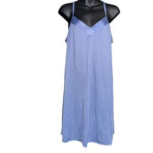 Beautiful Rare Vintage Vanity Fair bluish satin Slip with Trim Tag Size M 40 Good condition