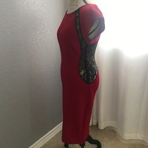This dress was worn 1x for a Christmas party. Its absolutely gorgeous! Lace back and sides.Has a lot of stretch and long length! Hugs all your curves❤️