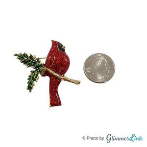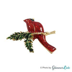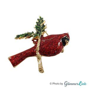 Beautiful Red Glitter Enamel Cardinal Bird Gold Tone Brooch Pin