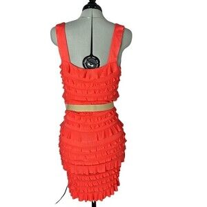 Beautiful Red Orange Midi Dress Sleeveless Tiered Bodycon Size 6