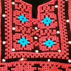 Beautiful Red and Black Embroidery Palestinian Girl Dress Thobe Tatreez Heritage.