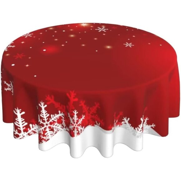 Beautiful Red and White 60-Inch Round Christmas Tablecloth — A festive touch for your holiday gatherings.
