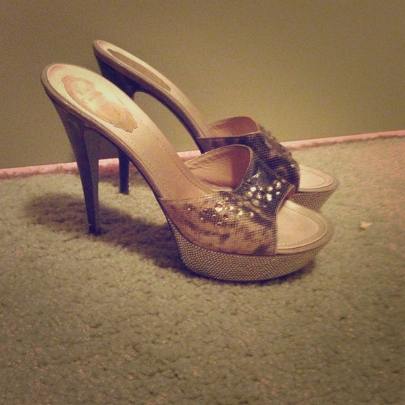 Gorgeous! Worn out 1 time! They are snakeskin-looking under the rhinestones with pale colors and rhinestone accent all around, even the bottom! MAKE ME AN OFFER. These are incredibly sexy and actually comfortable.