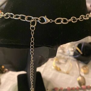 Beautifully linked with many full set sound rhinestones this necklace adjust up to 21 inches in excellent condition. See photos for full details and description. These rhinestones are clear on Silver tone secure, packaging or next day shipping.
