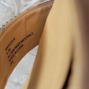 💢 Beautiful heels with rhinestones and buckle ankle straps. Gently worn. There are a few scuff marks and are noted in pictures. Approx 5 in heels. No box. Please feel free to ask any questions. Pet and smoke free home. Reasonable offers are welcome💢