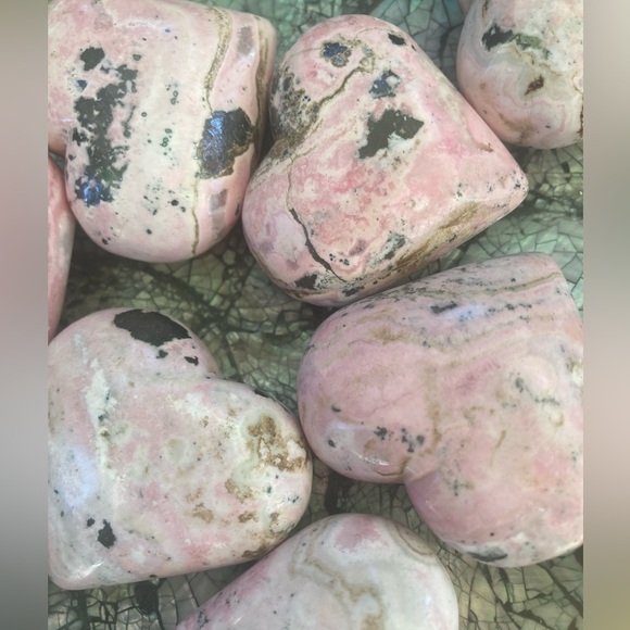 Only a few left! Beautiful rhodonite carved hearts from Peru. Price is for one heart