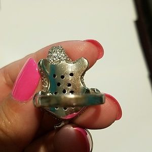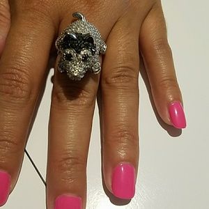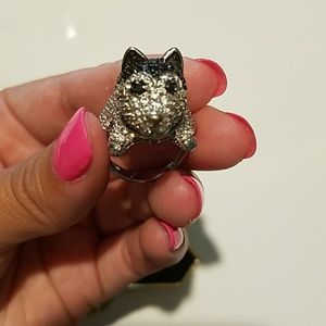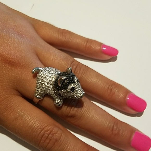 Genuine Sterling silver dog ring encrusted with swarovski crystals. Size 6.5 I believe. Used and has minor scratches on band.