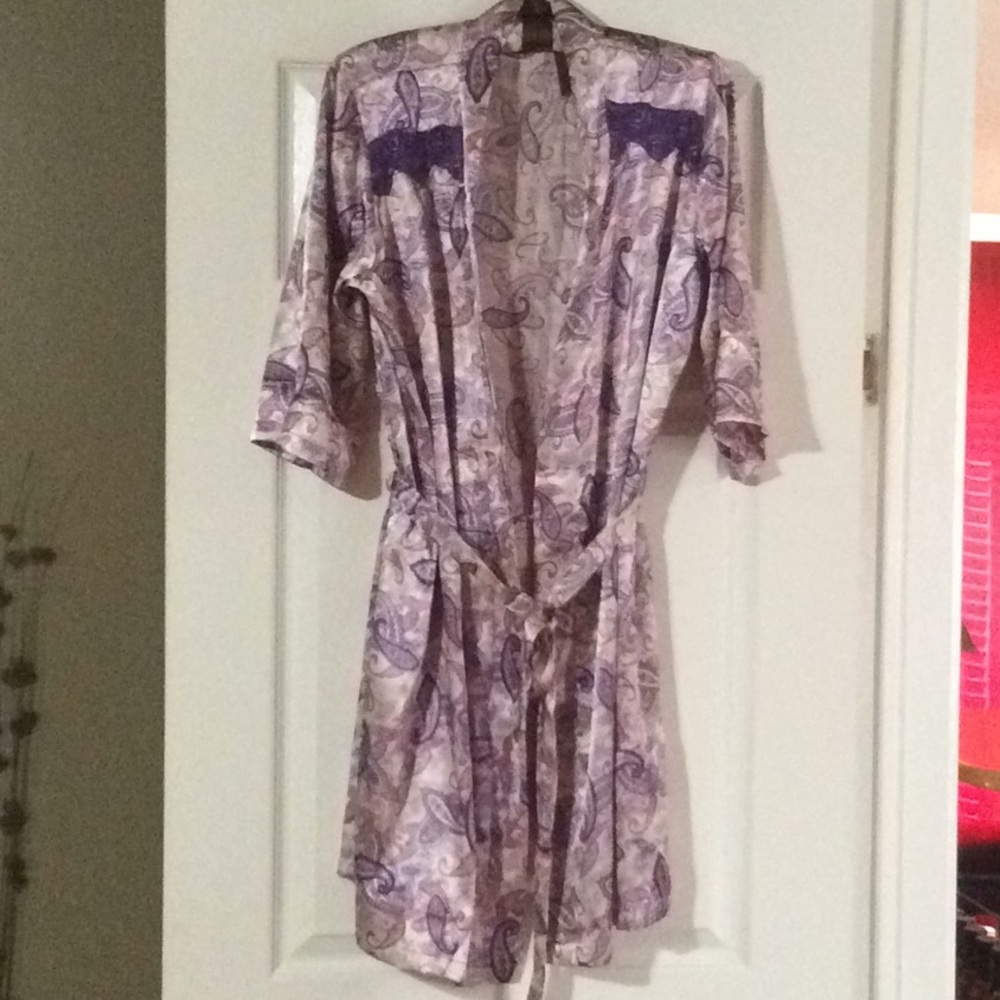 Fancy Sexy Robe. Silky Feeling Against The Skin. 100% Polyester. Ties In The Inside And Has A Matching Tie To Go Around The Outside.